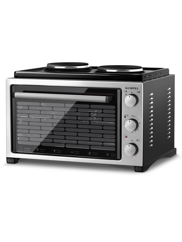 Mini šporet sa 2 ringle – KUMTEL – KF15360; Snaga: ringle 2000 W, rerna 1420 W; Kapacitet: 32 l; Dimenzije: 45X51,5X37CM; 2 ringle, mogućnost rada 2 ringle istovremeno ili 1 ringle i rerne istovremen