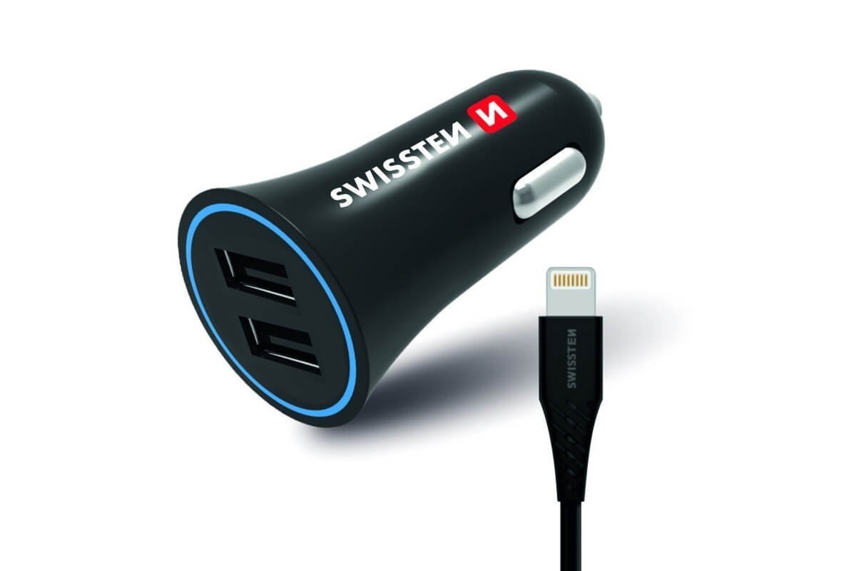Swissten Auto punjač 2,4A 2X USB + kabl Lightning 1,2m crna