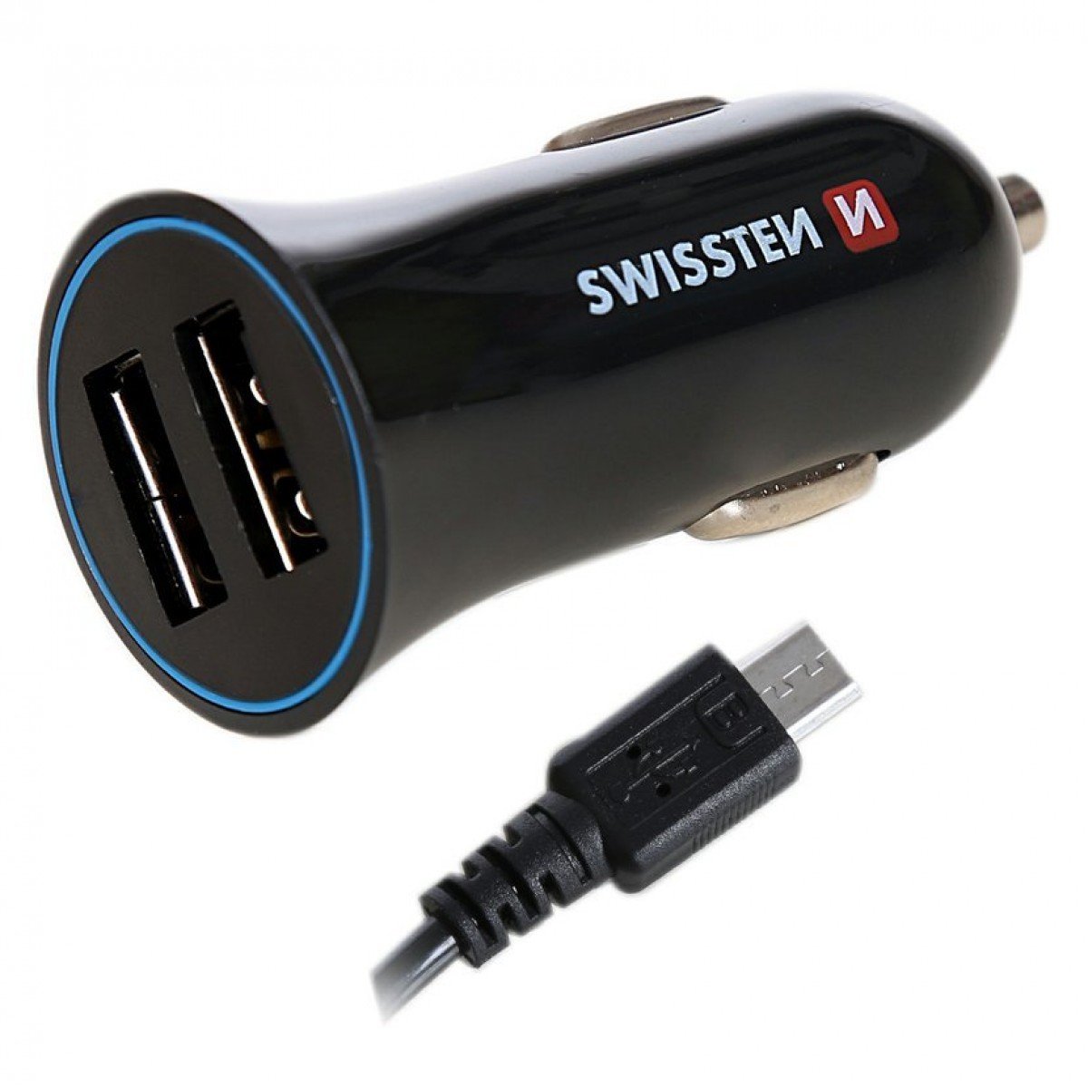 Swissten Auto punjač 2,4A 2X USB+kabl micro USB 1,5m crna