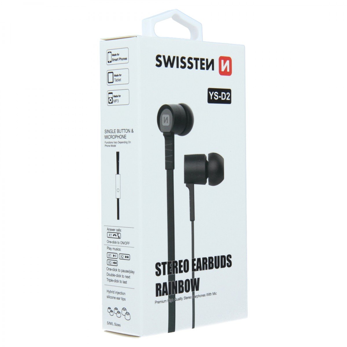 Swissten EARBUDS RAINBOW 3,5mm YS-D2 crna