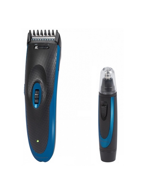 Set sadrži trimer za kosu i bradu, kao i higijenski trimer za uklanjanje dlaka iz nosa i ušiju; aparat je u plavo-crnoj boji; rad na baterije i strujni napon; Direct drive funkcija (kada je baterija potpuno prazna, brijač može da se koristi momentalno povezivanjem na strujnu mrežu); precizna glava za brijanje od nerđajućeg čelika za ujednačenjo skraćivanje dlaka; podesiva dužina dlake: 3–16 mm u 1–9 koraka; prikaz odabrane dužine na displeju; uklonjivi nastavak sa češljem; funkcija istanjivanja dlake (aktiviranje po želji); ergonomski oblikovana drška omogućava lako rukovanje aparatom; soft touch kućište aparata sprečava isklizavanje aparata iz ruke; uklonjiva glava za lakše čišćenje; LED indikator punjenja baterije; stanica za punjenje/ postolje sa gumiranim nožicama koje obezbeđuju stabilnost; aparat uključuje 5 dodataka: punjiva stanica/ postolje, punjač sa napajanjem, četkica za čišćenje, češalj, ulje za održavanje; punjač: 100–240 V, 50/60 Hz; baterije (Ni-Mh): 2x 600 mAh